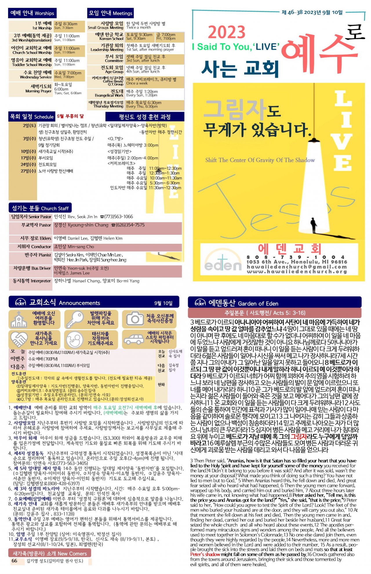 2023/09/10 하와이한인교회 에덴장로교회 주보