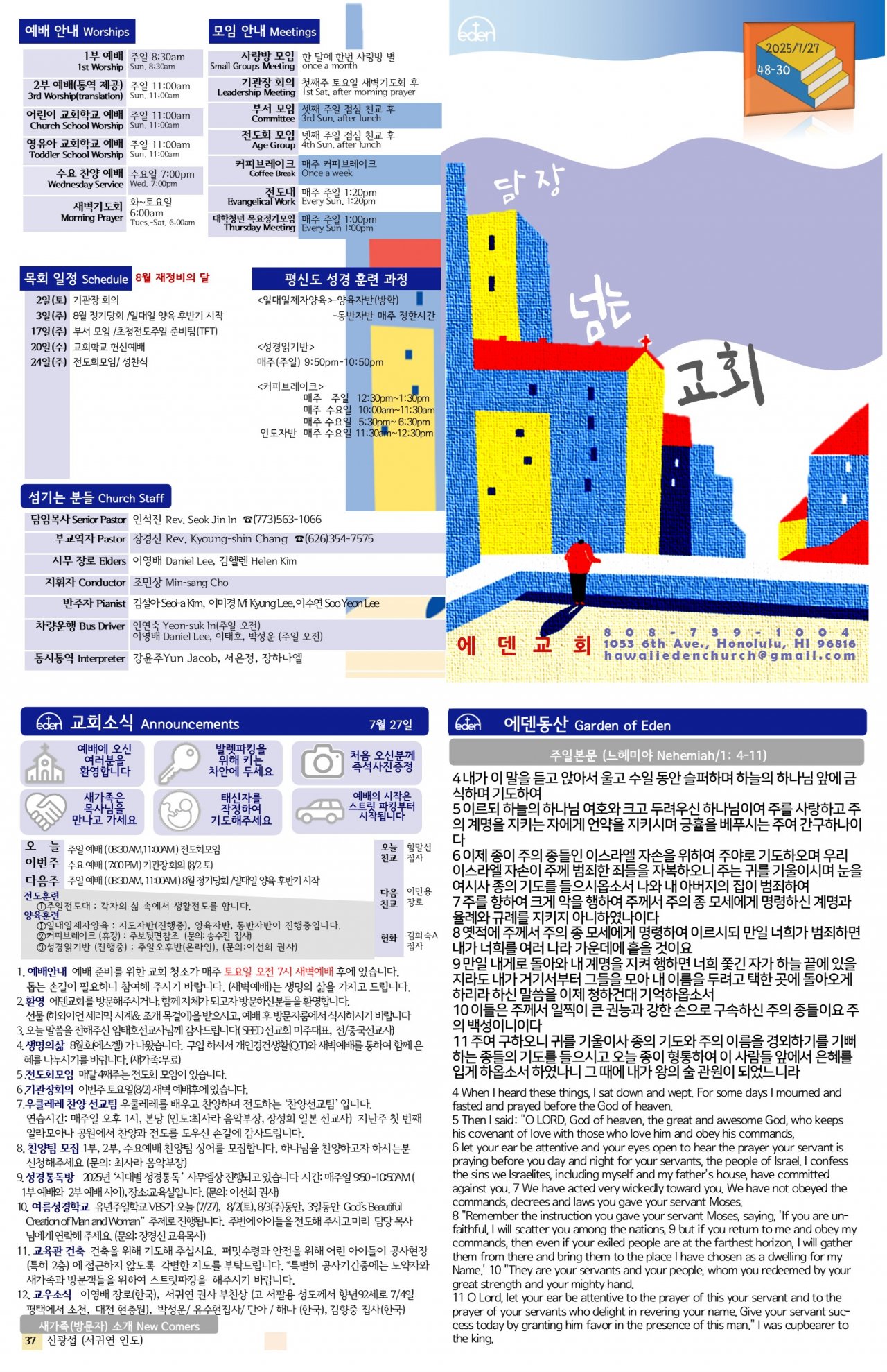 2025/ 7/ 27 하와이한인교회 에덴장로교회 주보