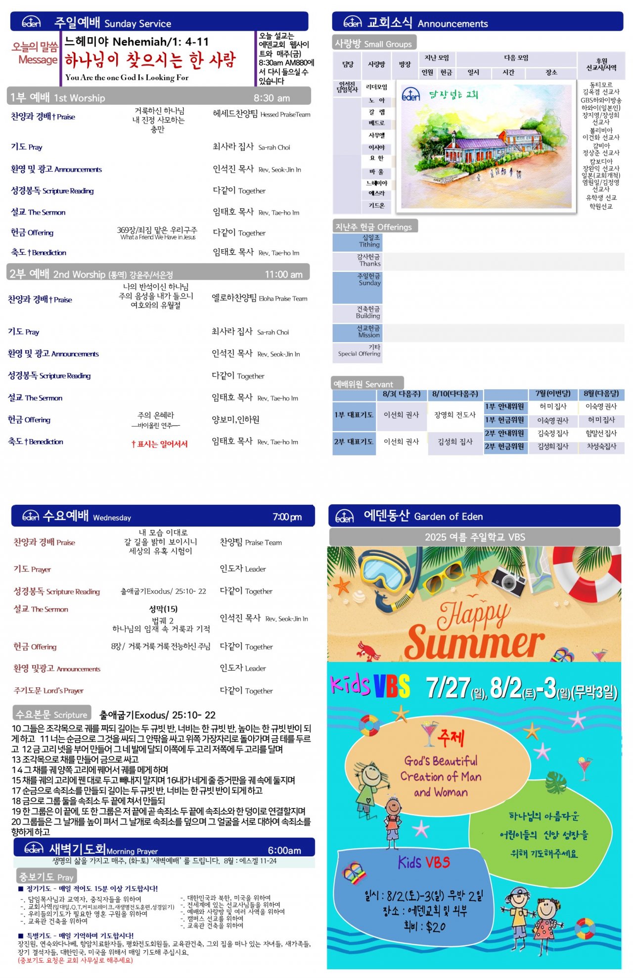 2025/ 7/ 20 하와이한인교회 에덴장로교회 주보