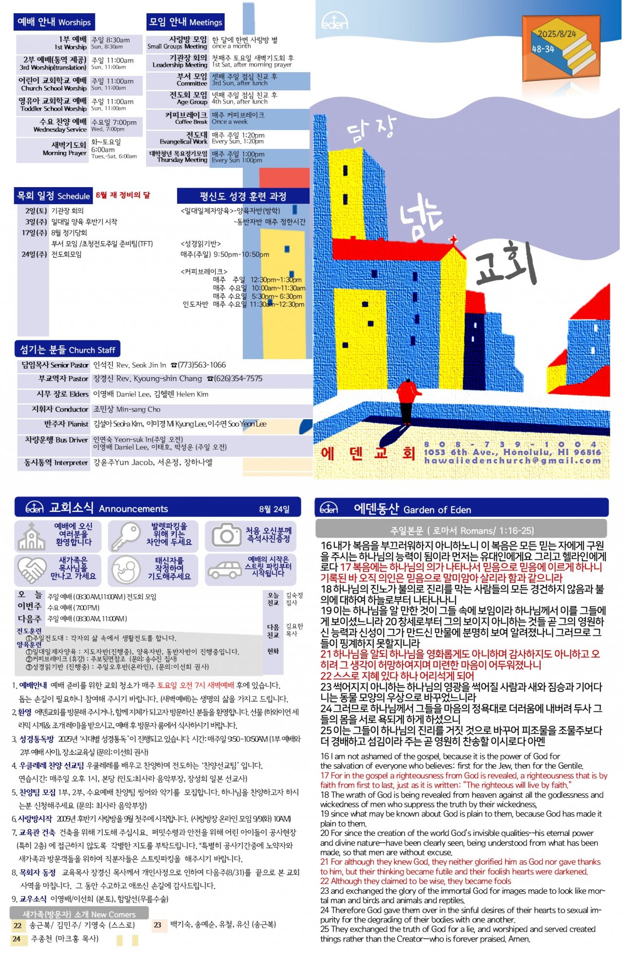 2025/ 8/ 17 하와이한인교회 에덴장로교회 주보