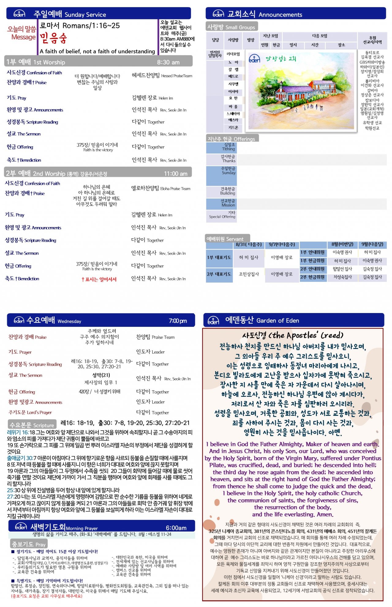 2025/ 8/ 31 하와이한인교회 에덴장로교회 주보