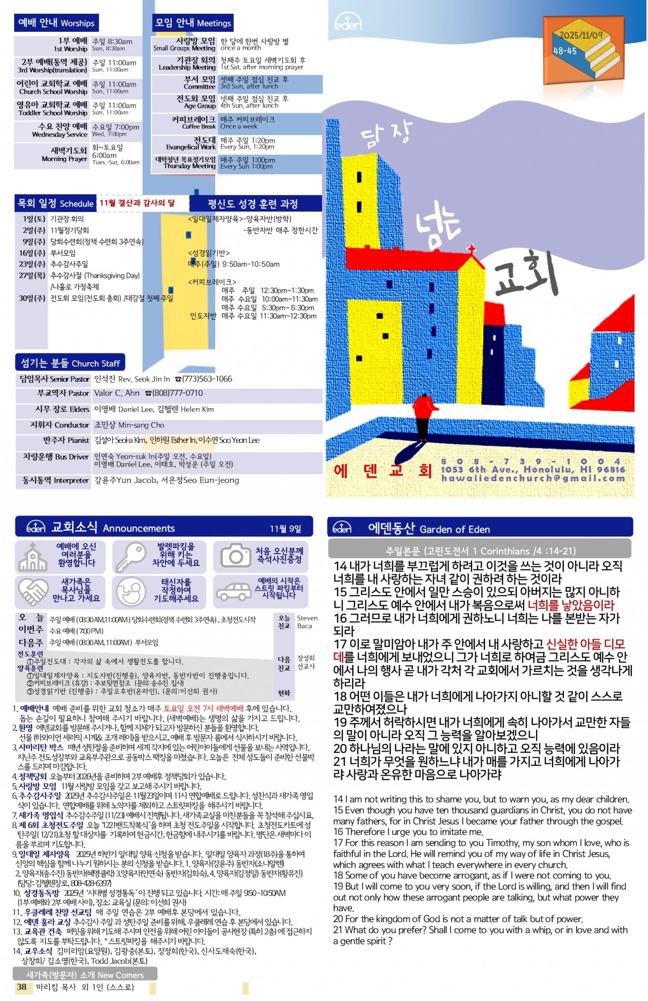 2025/ 11/ 09 하와이한인교회 에덴장로교회 주보