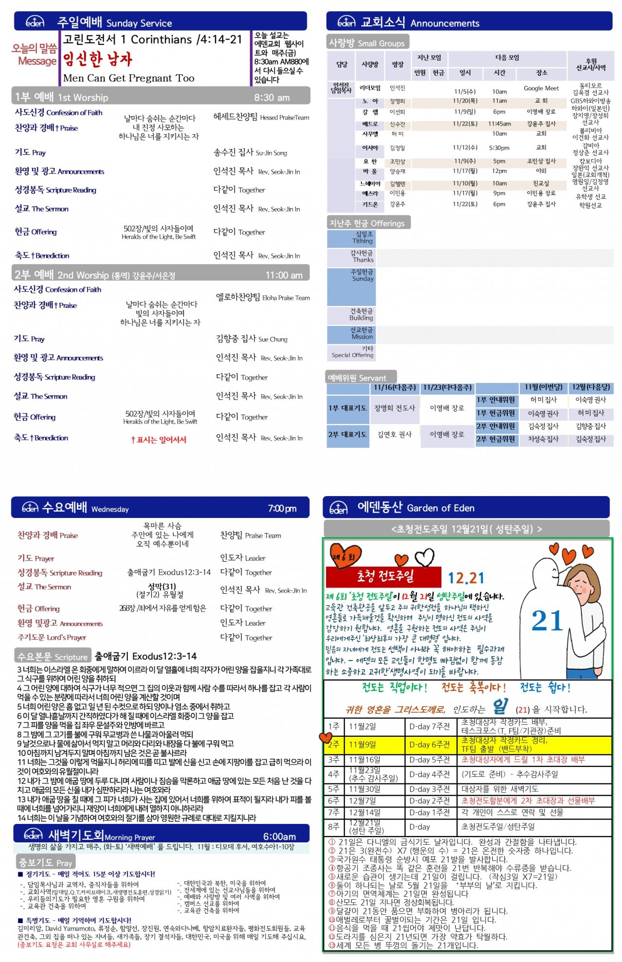 2025/ 11/ 16 하와이한인교회 에덴장로교회 주보