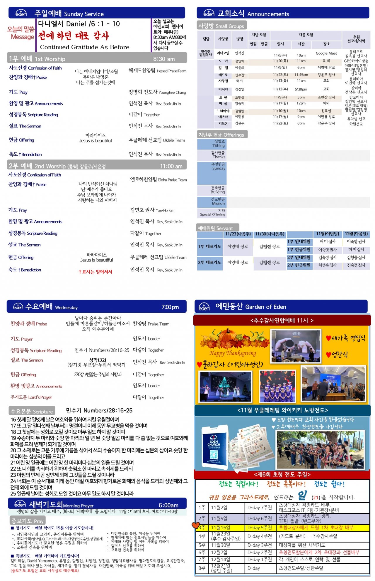 2025/ 11/ 23 하와이한인교회 에덴장로교회 주보