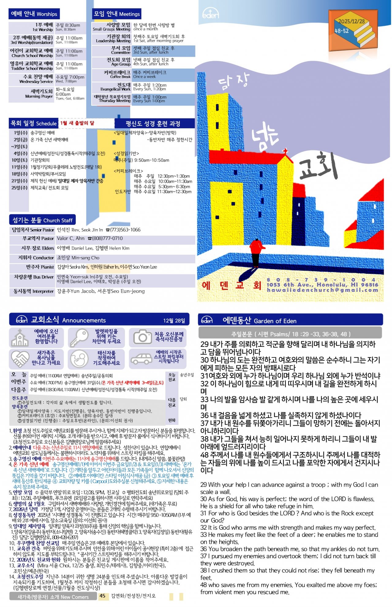 2025/ 12/ 28 하와이한인교회 에덴장로교회 주보