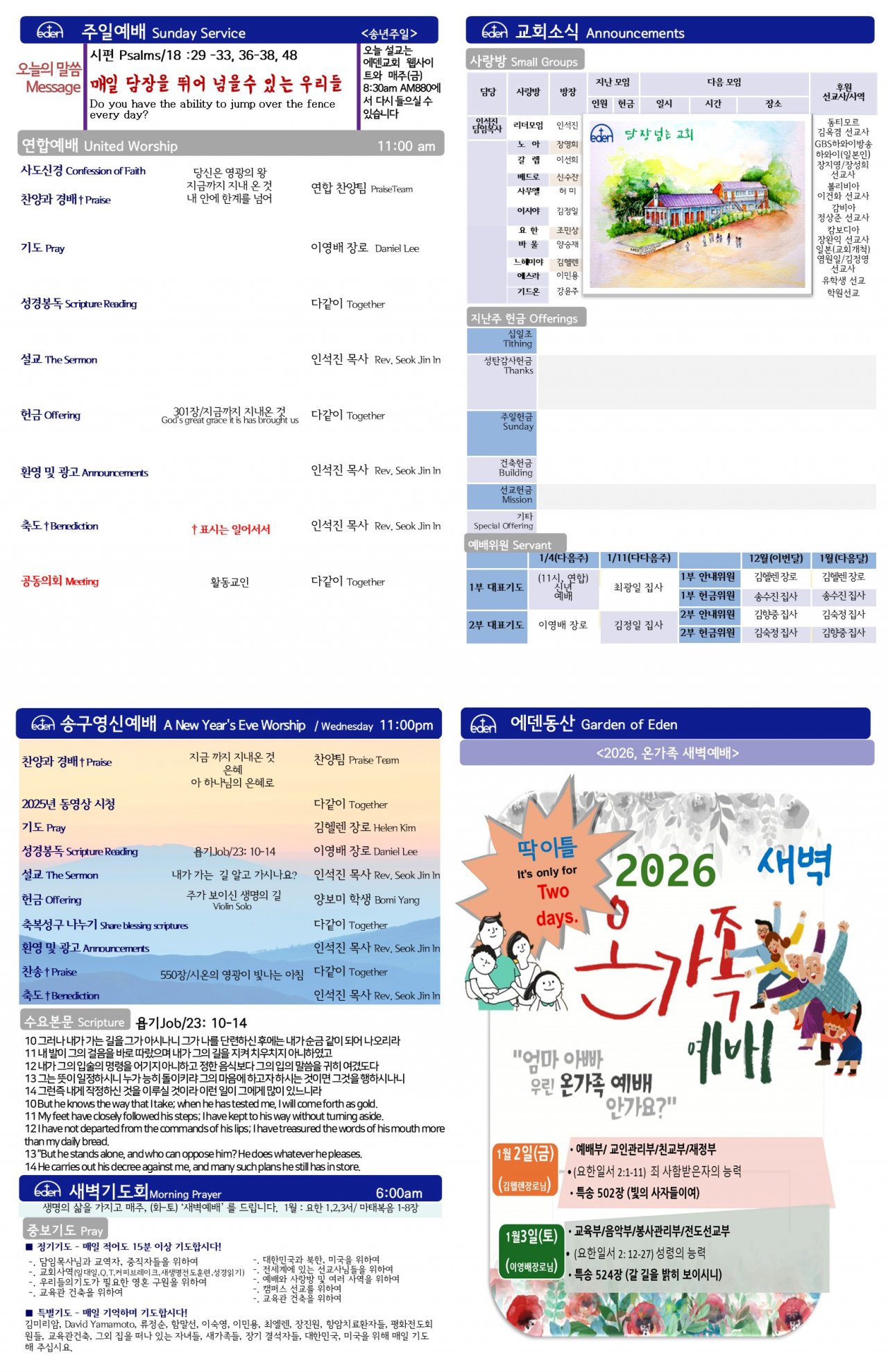 2026/ 1/ 04 하와이한인교회 에덴장로교회 주보