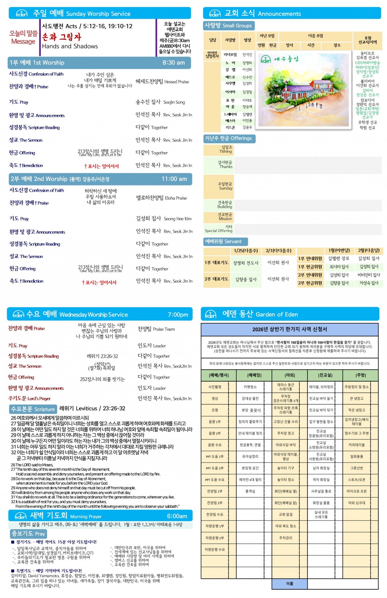 2026/ 1/ 25 하와이한인교회 에덴장로교회 주보