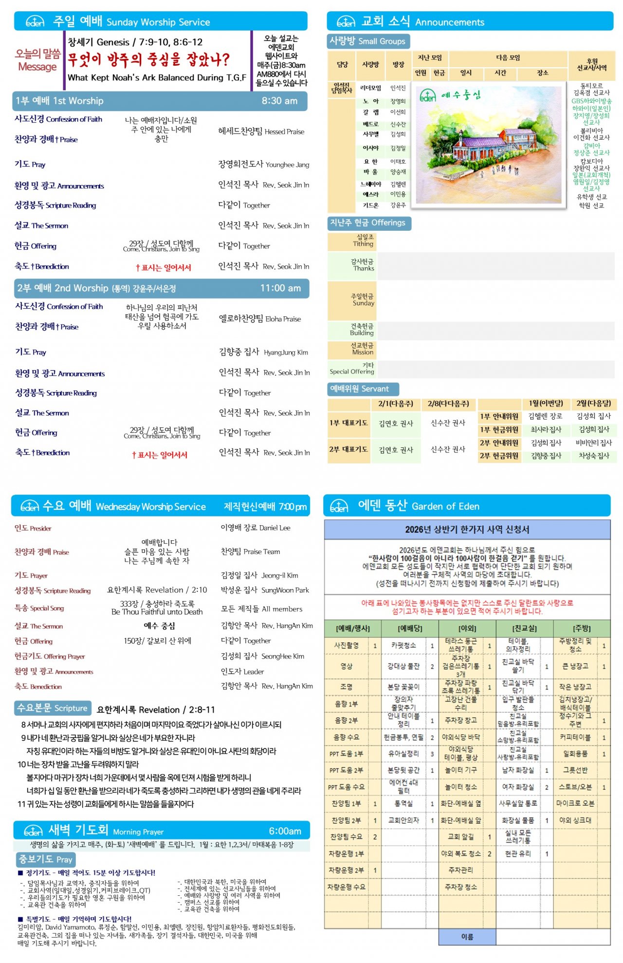 2026/ 2/ 1 하와이한인교회 에덴장로교회 주보
