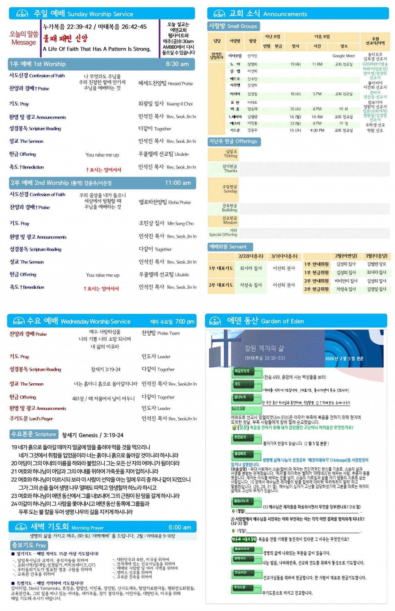 2026/ 2/ 8 하와이한인교회 에덴장로교회 주보