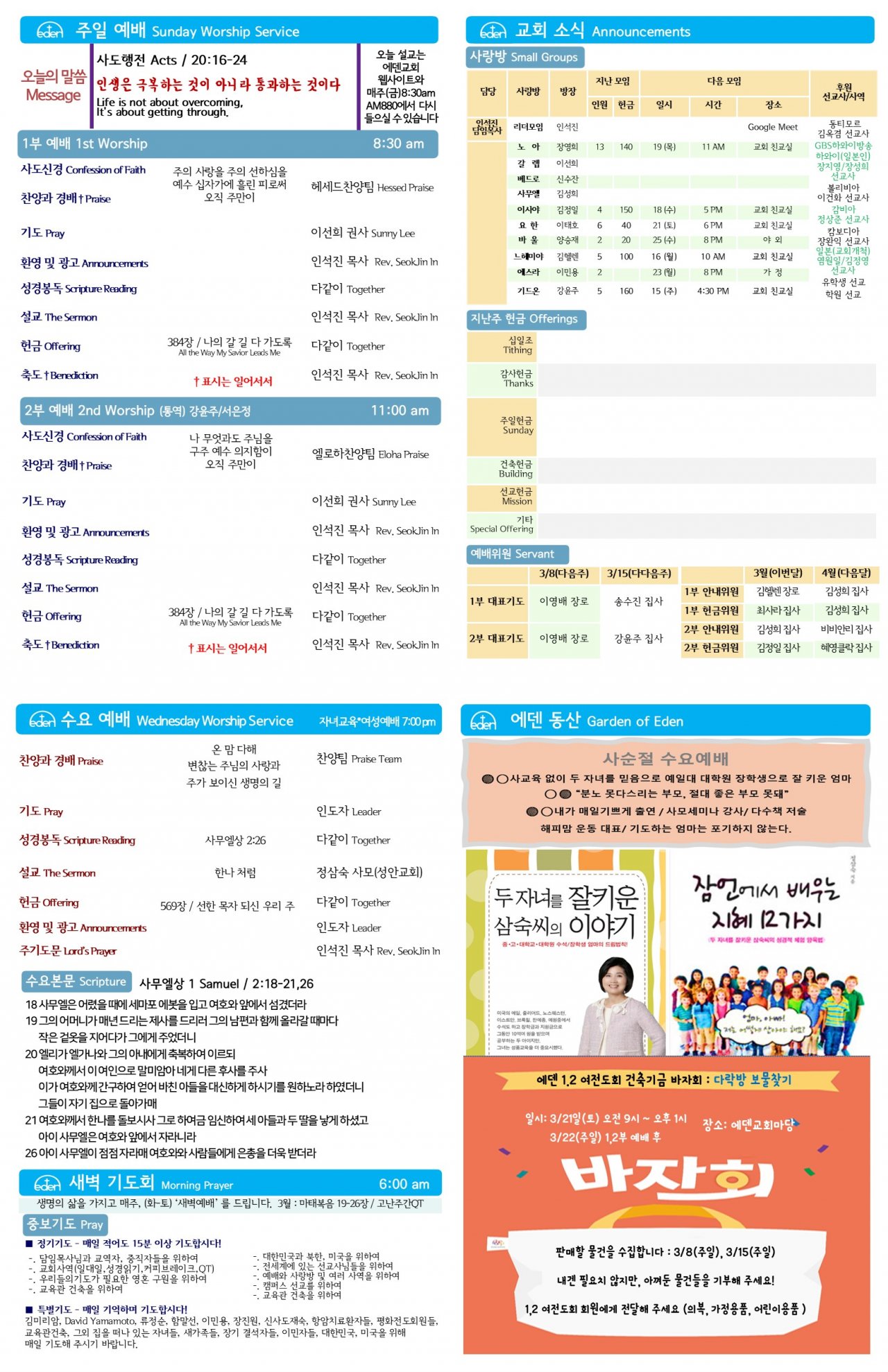 2026/ 3/ 8 하와이한인교회 에덴장로교회 주보